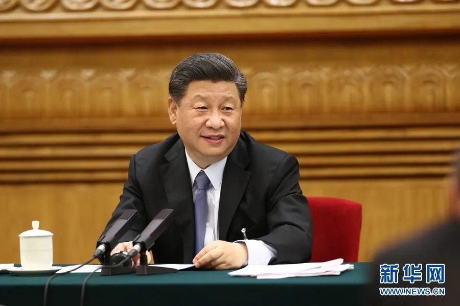 5月22日,中共中央總書記、國家主席、中央軍委主席習近平參加十三屆全國人大三次會議內蒙古代表團的審議。新華社記者 謝環馳 攝