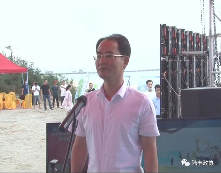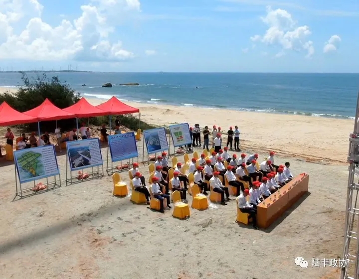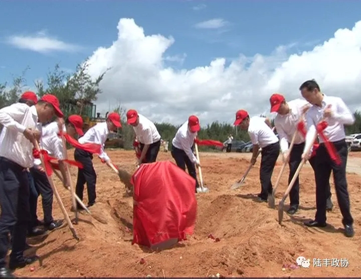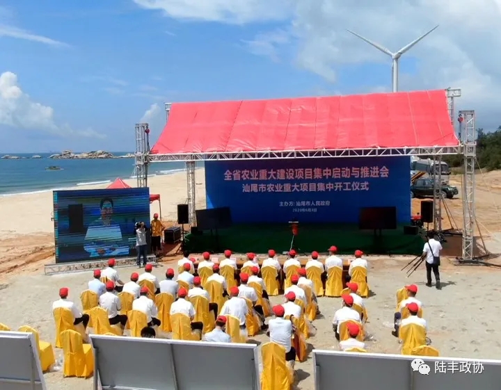 廣東省農業重大建設項目集中啟動與推進會結束后,汕尾市農業重大項目集中開工儀式開始。在陸豐主會場,汕尾市委常委李慶新,汕尾市政府副市長林軍,市委副書記、市長許偉明以及相關部門為汕尾海洋經濟種業產業園奠基。