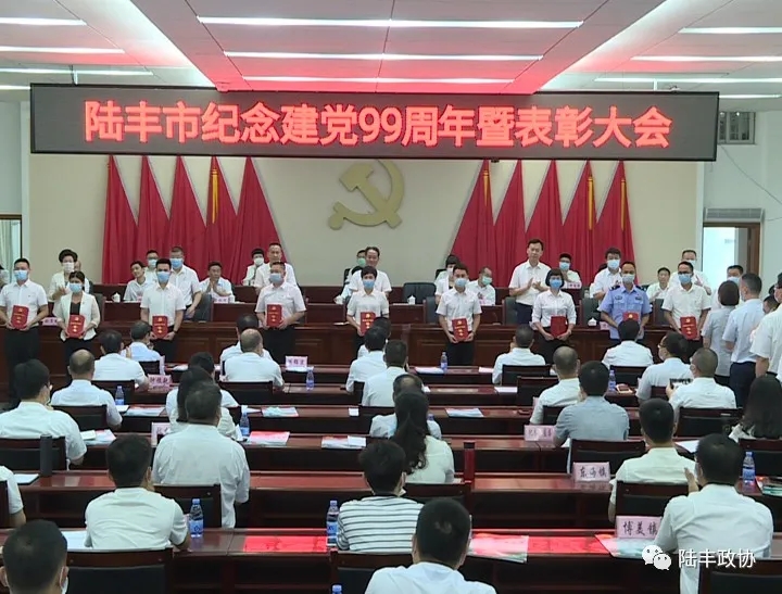 會議對湖東鎮黨委等99個“陸豐市先進基層黨組織”、黃婷婷等99名“陸豐市優秀共產黨員”和陳炳銀等99名“陸豐市優秀黨務工作者”進行表彰,并分別頒發牌匾和榮譽證書。