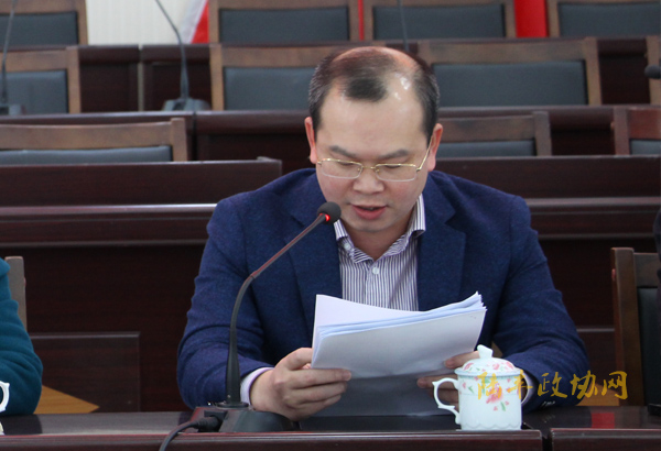 彭薏菁主持會議,并傳達了政協汕尾市七屆一次會議精神,要求廣大政協委員,一要提高政治把握能力,爭做發展協商民主的踐行者。二要提高調查研究能力,爭做奉獻智慧的獻策者。三要提高聯系群眾能力,爭做服務群眾的參與者。四要提高合作共事能力,爭做促進團結的推動者。