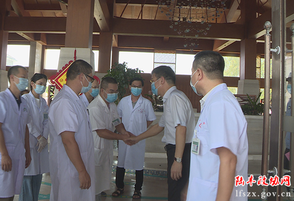 9月2日下午,市政協黨組書記鐘文管帶領外出政協委員陳勝南、陳陸、歐澤雄一行,走訪東海鎮海韻酒店、南塘鎮華禧酒店集中醫學觀察點,看望慰問堅守疫情防控一線工作人員,致敬疫情防控最美“逆行者”。市政協副主席林達克、張壯義、楊貴盛參加了慰問活動。