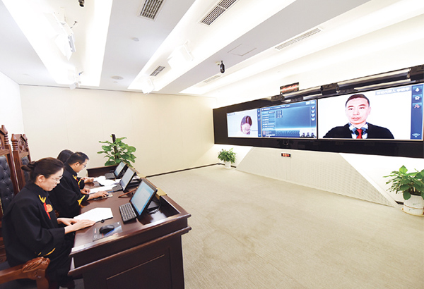 設(shè)立互聯(lián)網(wǎng)法院,是以習(xí)近平同志為核心的黨中央作出的重大改革部署。互聯(lián)網(wǎng)法院設(shè)立以來,積極順應(yīng)互聯(lián)網(wǎng)時(shí)代發(fā)展大勢(shì),積極探索互聯(lián)網(wǎng)司法新模式,為探索信息技術(shù)與司法審判融合發(fā)展的新路徑,明確網(wǎng)絡(luò)空間司法治理的新規(guī)則,促進(jìn)司法模式轉(zhuǎn)型升級(jí)和互聯(lián)網(wǎng)治理體系變革作出積極貢獻(xiàn)。圖為北京互聯(lián)網(wǎng)法院法官在線審理案件。 最高人民法院供圖