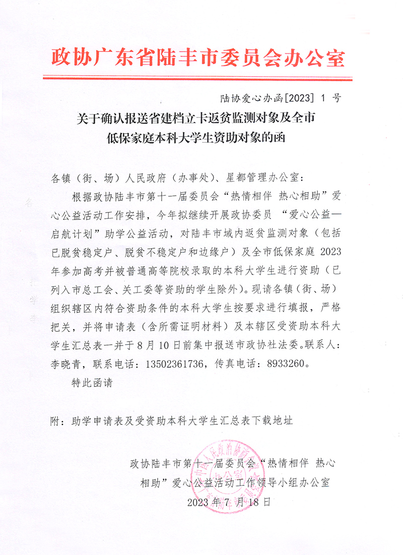 陸豐市政協(xié)“愛心公益-啟航計劃”2023年受資助本科大學生匯總表