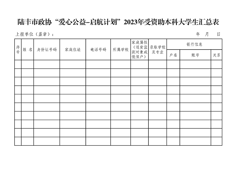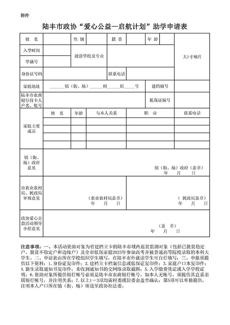 陸豐市政協(xié)“愛心行動—啟航活動”助學公益活動申請表