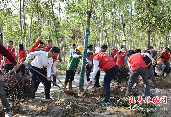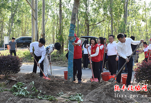 10月23日,市政協組織政協機關全體人員、駐鎮政協委員、鄉賢在湖東鎮湖東二中進校主道路開展“十月小陽春”植樹造林種“育才樹”活動,種植火焰木、紅繼木一批。