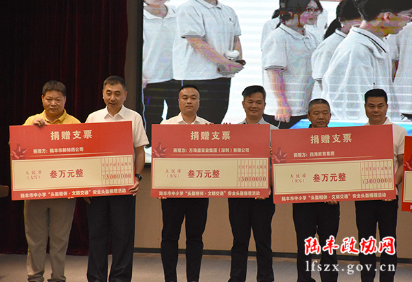 為助力學生出行安全,陸豐市政協積極發動委員參與此次活動,共同呼吁、守護學生出行安全。陸豐市政協常務委員吳金淡、范景海、市政協委員林少亮積極響應,所屬企業——四海教育集團、萬海盛實業集團(深圳)有限公司、陸豐市新特藥公司在活動中聯合捐款9萬元,用于購買安全頭盔免費發放給學生,合力筑牢出行安全防線,同心協力保障學生安全出行。