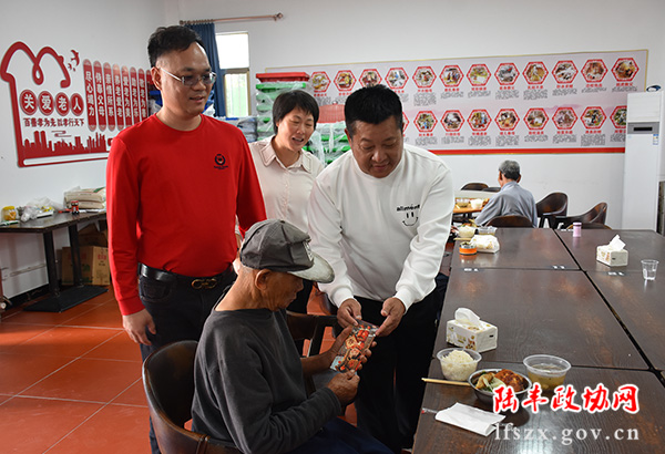 為發(fā)揮政協(xié)委員心系民生、尊老愛幼的優(yōu)良傳統(tǒng)。10月29日,市政協(xié)主席胡軍帶隊(duì)深入河西街道夏隴村開展重陽節(jié)走訪慰問活動(dòng)。在夏隴村幸福食堂,胡軍與用餐老人們親切交流,仔細(xì)詢問老人們的飲食起居和身體健康狀況,并為10多位五保老人送上節(jié)日慰問金,向他們致以節(jié)日問候。同時(shí)還為夏隴村發(fā)放2萬元幸福食堂運(yùn)營捐助金,提升幸福食堂的服務(wù)水平。